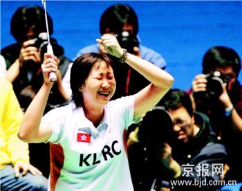 在被教练和队友劝回场边后,怒火未消的林丹又与韩国队的中国籍教练李矛发生了争吵,中国队的几位教练急忙劝开二人。这一连串事件导致比赛一度中断,裁判最终对林丹出示黄牌警告。接下来的比赛,林丹心态大乱,以23比25输掉决胜局。在颁奖典礼上,获亚军的林丹左手叉腰,脸上毫无笑容。RJ230上图为中国香港选手周蜜昨在韩国羽毛球超级赛女单决赛中2比1胜中国选手卢兰夺冠。 新华社发