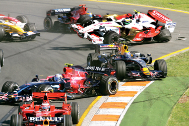 在昨天进行的2008赛季F1澳大利亚首站比赛中,赛车因碰撞及操作失控,斜滑出赛道的事故不断发生。在场地、气候条件一切正常的情况下,赛会安全车先后三次出动,22辆赛车中,最终仅7辆赛车完赛,完赛率只有31.8%,创造了天气状况理想状态下的完赛车数最少的纪录。