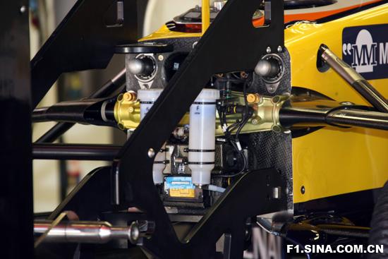 雷诺R28在西班牙站使用的新前悬挂,内部包含一套新减震器。(摄影:新浪F1频道高正)