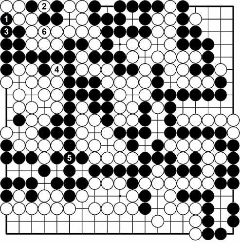 赛后王尧计算,左上黑棋所得34目,右边白棋得50目,这样黑棋只要在下边打穿白空,获利16目的话,黑棋即可获胜。实战黑棋所得显然不止16目。★霜仁