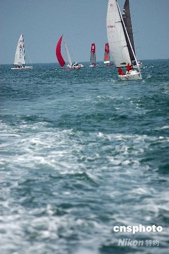 6月27日,2008中日韩国际大帆船赛在山东省日照市举行,来自中国、日本、韩国等国的30多艘大帆船,370余名运动员、教练员、政府官员参加了比赛。据介绍,举行中日韩大帆船赛在国内尚属首次,对于加强国际间的友好交流,推动中国帆船文化的普及和发展具有重要意义。中新社发 陈为峰 摄