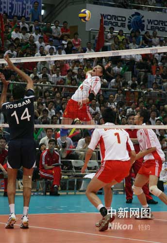 比赛开始后,中国队的阵容依旧和上周相同,主攻沈琼、崔建军,副攻于大伟、边洪敏,接应二传袁志,二传焦帅以及自由人任琦。