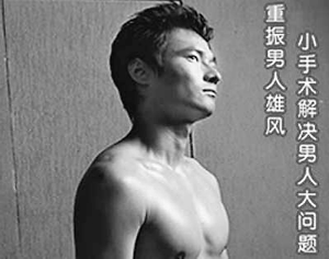 根据网友提供的网络截屏,在南京某医院的宣传网站上,貌似李毅出演的两则“广告”被放在醒目位置。第一则广告里的李毅若有所思,旁边用红底反白写着“东大男科恢复您的自信与健康”。第二则广告也是李毅的古铜色肌肤写真照片,旁边配有文字——“小手术解决男人大问题,重振男人雄风”。