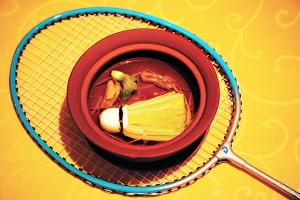 姜:我们在菜单、菜品、菜式的设计上突出了奥运特色。比如鸭肝酱配面包、奥运主题拼盘、水立方鸭舌、射箭笋尖等等一系列的奥运菜肴,给人耳目一新的感觉。再比如上汤金羽松茸,这道菜从形象上就是一只羽毛球。先将娃娃菜飞水,修成羽毛球状,再将鸽蛋去黄,加入虾胶。用虾胶将鸽蛋与修好的娃娃菜相连,用香菇丝做装饰。说起来简单,如果没有深厚的烹饪技法做支持,这道菜是很难完成的。