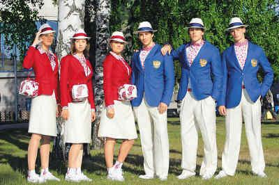 俄罗斯代表团奥运服装设计,主色彩是红蓝白相搭配,性别的差异用不同颜色表达,在开幕式上恐怕这个团队会让人看来赏心悦目。此外,他们特意在运动服上绣了一个中国特色非常鲜明的“凤凰”。也许是希望借助“凤凰涅槃”的深意来表明希望借北京奥运会让俄罗斯体育浴火重生。