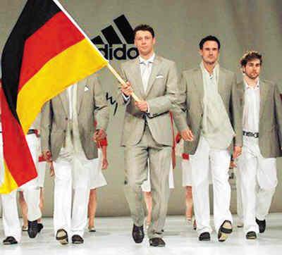 由阿迪达斯操刀设计的出场服延续了德国人传统的性格。做工精细,定位准确,灰色西装的淡雅,白色运动服的简单,唯有汉字等中国元素被强调出来,一笔一画,卓尔不群。(郝森磊)