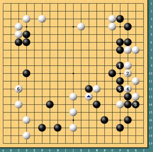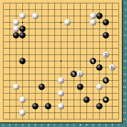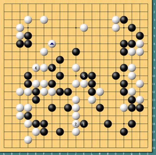 图5:崔哲瀚图穷匕见。赛前刘星曾评价崔哲瀚的棋很简单,这盘棋也确实让我们见识到了崔哲瀚“简单”的一面。图为实战进行,崔哲瀚信念很明确,那就是:我要屠龙。为了“屠”龙不惜一切代价,哪怕是左边50目的大边也可以一眼不眨地送掉,棋局也到了最刺激的时刻。