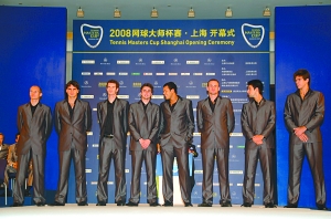 与前两年不同,今年的开幕式地点选择在市区的展览中心友谊会堂,但入场顺序依旧是按照球员名字的字母顺序进行的,达维登科第一个亮相,首次参赛的特松加则最后一个走入会场。在走过长长的红地毯后,球员们都会在一块展板前停留,签上自己的名字。那是组委会特意设置的,主题为“寄语大师杯,赠言大师赛”,硕大的展板上全是从全国征集来的球迷的照片和留言。从明年开始,上海将不再承办大师杯赛,取而代之的是全新的ATP1000系列赛。