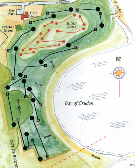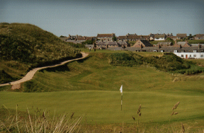 球场的第四洞被评为世界500个最伟大的洞,该洞全长193码,是三杆洞,炮台的发球台,球道是下坡贯通果岭,如果遇到顶风,或许需要一根一号木才能将球送上果岭。突起的发球台是球场一个制高点,可以观看到北海一角。通过白色的桥,才能走上果岭,在这儿能闻到海水的气息。
