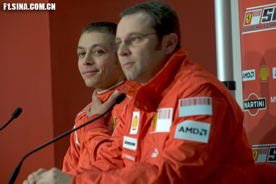 法拉利的确为罗西的这次试车搞的极为隆重,不仅车队领队多梅尼卡利亲自出出席了一个围绕罗西举行的发布会,还安排员工大搞合影。罗西的整个试车过程也并非作秀、走过场,而是按照平时的试车步骤严密的执行。