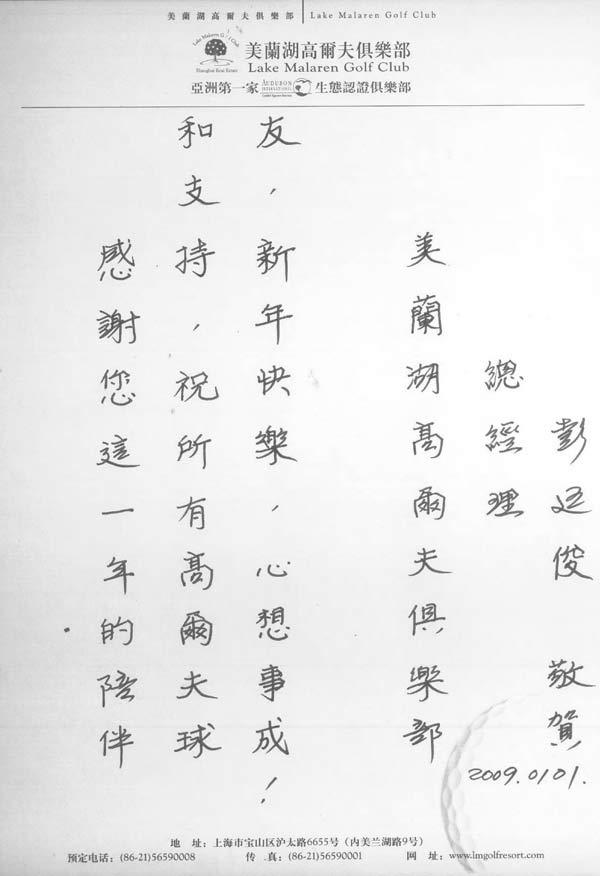 上海美兰湖俱乐部总经理彭延俊向新浪球友拜年
