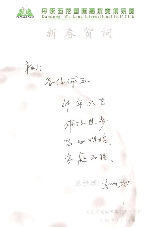丹东五龙高尔夫俱乐部总经理孔向伟向球友拜年