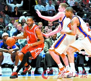 本报讯 (记者 许 蓓) 在麦迪逊广场花园球馆进行了一些常规的热身训练后,姚明回到了球员席上,他在火箭客场对阵尼克斯的比赛中依旧是场边看客。赛前姚明与火箭的球员发展主管布雷特·耿宁做了一会低位对抗练习,以“试验”他的膝盖伤势恢复状况能否应付比赛,结果还是不行。这是姚明连续第2场缺阵,但在离开球场以前,他说出了自己可能复出的时间,“费城吧。”姚明表示自己可能在当地时间本周三晚(北京时间周四)火箭对76人的比赛中出场。