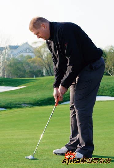 注意:整个推杆动作是以肩膀和手臂的摆动来控制的,整个过程中下盘应该保持不动;