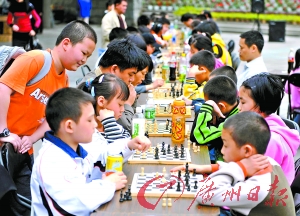 象棋和围棋将在2010年广州亚运会上首次成为正式比赛项目。这使得围棋、象棋和国际象棋这“经典三棋”有史以来第一次在亚运会实现了“三棋全会”。这不仅将成为广州亚运会的一个亮点,更为广州普及棋类运动起到十分积极的推动作用。借本次中国棋文化广州峰会之机,为了让广大棋迷有机会近距离接触棋类项目的顶尖高手,本报精心策划了这项别开生面的“三棋”活动。让人意想不到的是,举办活动的消息刚公布,就吸引了众多业余棋手和棋迷踊跃报名,其中包括不少广州的中小学生。在围棋、象棋和国际象棋的比赛中,围棋的参赛人数最多,达到了253人。因为围棋参赛人数严重“超标”,赛事组织者不得不决定加赛一轮“PK赛”。到下午5时45分,大分、小分一齐算,前4名决出,但紧跟着的两位小棋手竟然大小分相同,而每组只能有前5名出线,获得在3月1日下午挑战棋圣聂卫平的资格,时间已不允许他俩进行“PK”了,只好抽签决定谁出线,最后,自然是一人欢喜一人愁了。通过本次公开挑战赛最终获胜的10名围棋业余选手(10岁以下组和10岁以上组各5名)与10名象棋选手和10名国际象棋选手,一起赢得了参加3月1日棋圣、棋王、棋后挑战赛的资格。