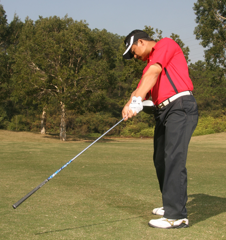 初学者在挥杆的过程当中,经常会出现挥杆力量释放过早的情况。挥杆力量释放过早造成的结果,一是球会飞向左边,二是击球无力。