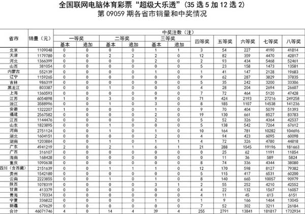 35选5加12选2第09059期 追加投注开奖结果