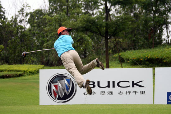 注意观察的人就会发现,李大山是一种“腾空式”开球,但打出去的球依然很直很远,即使在空中时刻,身体无论怎样弯曲,他的眼睛依然瞄准小球的方向。李大山表示在一场18洞的比赛中他可能会出现七八次这样的动作,同时他对自己的距离很自信。李大山大约一米六几的身材,却能够开出大约300多码的距离。