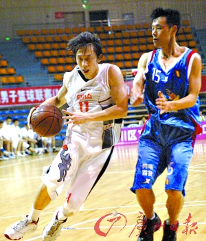 江苏队是上赛季NBL联赛的第4名,在冠军广东凤铝队解散、天津队和青岛队升入CBA后已当仁不让地成为本赛季NBL的“老大”。昨天的比赛开场后,江苏队祭出“双塔”,两名身高2.05米而且体格壮硕的球员张国东、张天宝给广州自由人队的内线造成了很大压力。广州自由人队内线突不进去,外线投不准,上半场场面十分被动,一度落后对手16分。