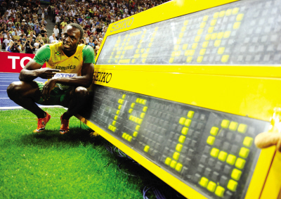 昨天凌晨,就在牙买加名将博尔特以9秒58的成绩刷新了男子百米最好成绩仅4天后,博尔特又在200米赛场上以19秒19的成绩打破自己在北京奥运会上创造的世界纪录,将100米、200米两项世界纪录均大幅的提高0.11秒,牙买加飞人不仅成为本届世锦赛双冠王,更是历史上唯一一位奥运会、世锦赛双料冠军。赛后新华社《博尔特,飞人还是非人?》一文中这样评价他:“从某种意义上说,博尔特已经不是人,准确地说,他是地球人中的异类,他应该和其他物种去比赛。”