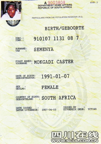 就在各方为塞蒙娅性别争论不休之时,北京时间昨天,南非有关方面公开了塞蒙娅的出生证明,南非方面希望以此证实这位女子800米世界冠军是女性。但是,由于最终决定权在国际田联,如此重磅的证据,在最终检测结果公布之前,也只能是个参考。文方珲/图CFP