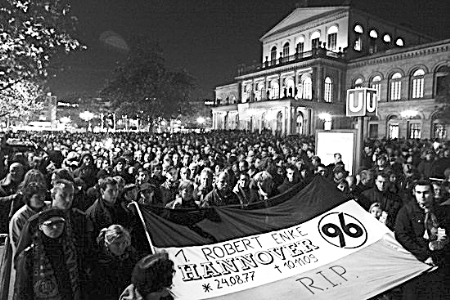 恩克自杀后,德国足坛也举行了一系列的悼念活动。当地时间11日晚,恩克的悼念仪式在汉诺威大教堂进行,涌进了一千多名球迷,德国国家队教练组及队长巴拉克都到场参加,领队比埃尔霍夫潸然泪下,场面十分感人。德国足协还在昨天正式宣布,取消11月14日德国队与智利队的热身赛,下轮德甲德乙比赛所有球员都将臂缠黑纱参赛。德国总理默克尔也通过个人信件向恩克的家属表达了慰问和惋惜。记者 廖宇翔