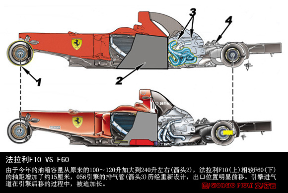 今年规则的修改,包括禁止赛中加油和收窄的前胎,对2010款赛车的设计构成了明显的影响。