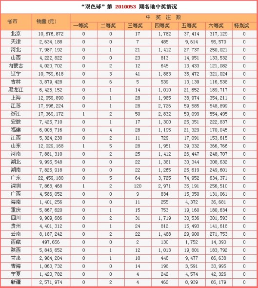 当期销量高达2.33亿,广东以2245万(不含深圳)领跑全国。奖池继续上升,突破2亿达到2.02亿,高额奖池和销量将使头奖和二等奖的含金量保持较高水准。周四晚开奖的10054期双色球仍然值得期待。