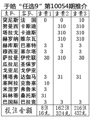 于皓胜负彩:突尼斯难胜法国 巴国际忙追分