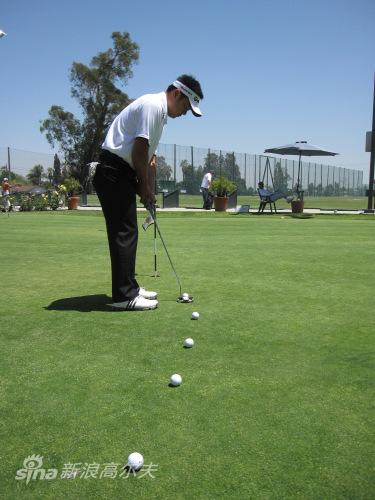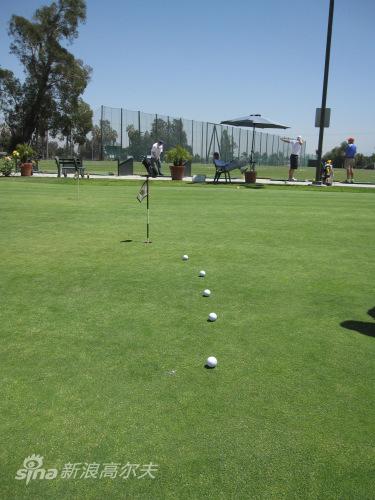 最开始的时候选择较平的果岭去练习,随着自信心的增强再选择难度越来越大的果岭区域去练球。这种练习能够让你在关键的时候,避免三推,有机会一推入洞。