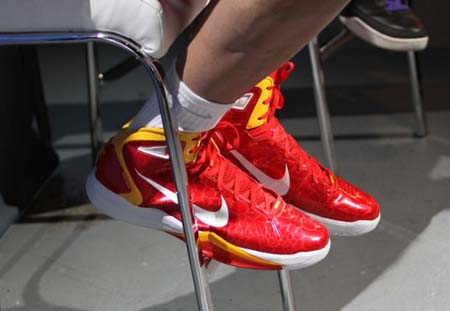 Nike Hyperize实际上是Nike Hyperdunk的衍生鞋款,因为早在北京奥运会时就穿过Hyperdunk, Nike此次也为阿联同时推出了Hyperize易建联球员别注版本。更有意思的是,不知是Nike的“天喷”不够合脚还是这双Hyperize太过舒服适,阿联在上个赛季几乎是穿着Hyperize出战整季的!这双鞋可谓是阿联的最爱。