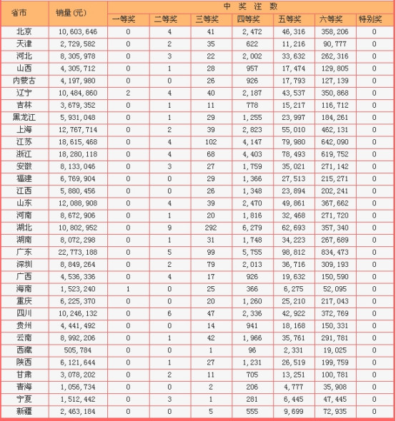 当期销量达2.42亿,保持着周中场的销量增长势头。广东以2277万继续领跑全国。奖池在头奖持续低迷后一路上升,目前已经高达3.37亿,接下去是继续上升还是头奖井喷,均值得关注,在高奖池以及高销量的保障下,目前理论上以足够开出70注以上500万大奖。