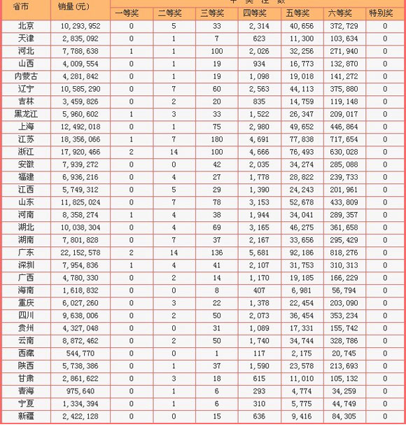 当期二等奖全国开出107注,全国仅27个联销省市自治区分享,中出头奖最多的广东和浙江两省在二等奖收获上同样最多,分别有14注入账,其他地区中出二等奖均为超过10注。本期全国投注总额为2.35亿,计奖结束后奖池下降到2.78亿,周日开奖的10088期仍有足够的空间可以井喷。