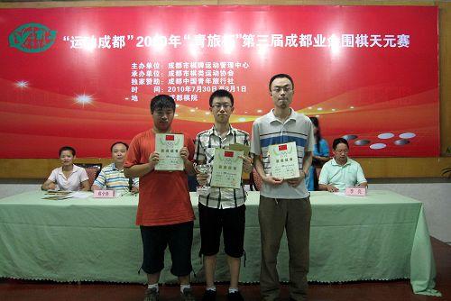 团体前3名依次是:成都围棋培训中心(蔡恒、刘宗建、张霁阳),团体一(冯勇、龙霖、邱伟),团体五(尹长红、薛维贵、韩勇彬)。