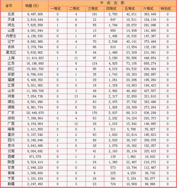 详细开奖:广西1注500万12二等 河南13注2等失头奖