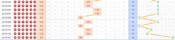 当期和值开出99点,上周3期开奖中有两期和值在100点以上,而近期和值的摆幅不是很大,鉴于红球目前形势判断,和值近期有望走向低点位,目前70-79区间已经遗漏28期,60-69遗漏25期,需要盯防。(新彩)