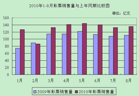 2010年8月份全国彩票销售情况:月销量135.75亿元