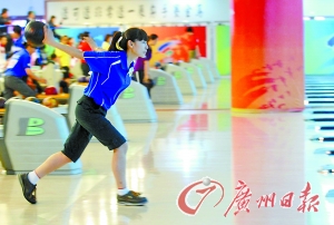 选手在四体会保龄球比赛中。本报资料图片