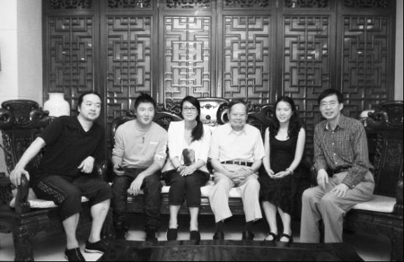 | 词作者徐荣凯,翁帆、杨振宁夫妇,会歌演唱者毛阿敏与孙楠,曲作者捞仔(左图,从右至左) |