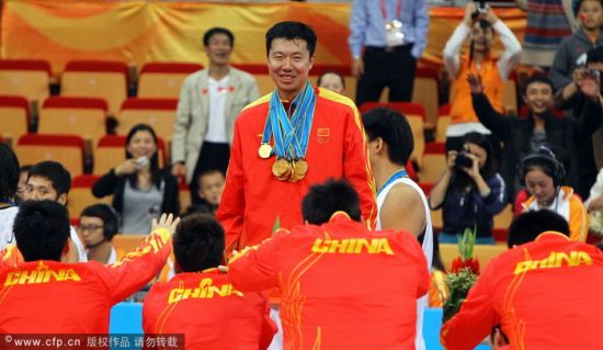 六、亚运会男篮夺冠 大郅挂满12金受队友集体鞠躬