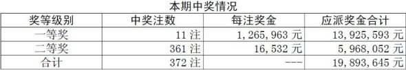 足彩开奖:头奖11注126万2等1万6 网友合买中148万