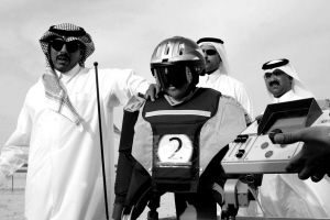 在舆论压力下,阿联酋和卡塔尔等海湾国家相继研发机器人骑手以取代儿童进行骆驼赛跑。这种一尺高的机器人被固定在骆驼的背上,比赛时由一辆在赛道旁并行的汽车上发出的电子指令和声音来控制机器人指挥骆驼。比赛中,驯骆驼师在赛道外的一辆卡车上通过远程遥感设备,控制被安装在驼峰上的机器人。