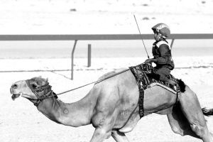 如同赛马一样,最好的骆驼也要有出色的骑师引导它奔向终点。骆驼比赛的骑师一般都由体重在15-17公斤的男童担当,小骑师摔下骆驼被踩伤甚至踩死的悲剧经常发生,所以赛骆驼也受到舆论的强烈谴责。