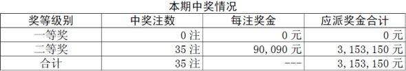 胜负彩11050期开奖,一等奖无人中,7,357,423元滚存下期头奖奖池(周六胜负彩)。二等奖35注,每注奖金90090元。本期胜负彩销售量为:16,422,820元。任选九场头奖出588注14371元。