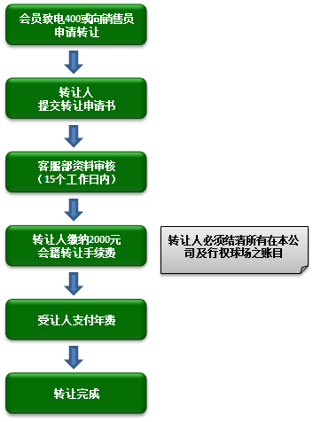 ·会籍转让手续费为2000元/次,由申请人向本公司缴纳;