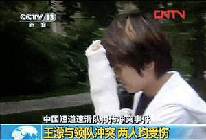 7月24日,国家短道队队内人员于青岛集训期间在驻地发生了严重的内部冲突,中心主要负责人第一时间赶赴青岛对此事进行调查,平息相关人员情绪。现将初步调查结果通报如下:7月24日晚,王濛及部分队员未按队伍规定时间返回驻地,领队对他们进行了严厉批评,后王濛等队员情绪失控,致使领队等人被打,驻地设施被部分损坏。在此过程中,王濛的双手被玻璃划破,已在第一时间接受治疗。