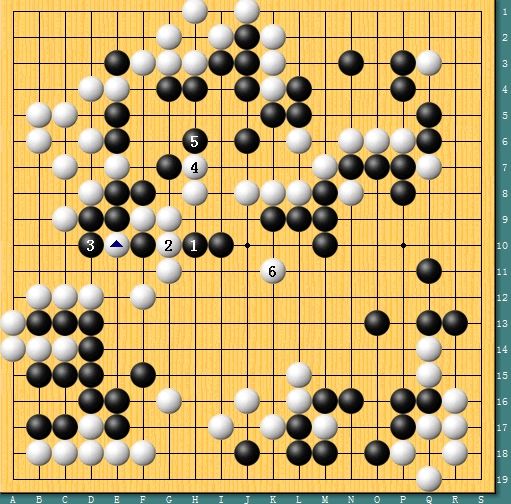 图二,正常节奏。白棋无路可退,1位断反击是当然的一手,黑2拐吃是正手,白3长后黑4位压补强左下一块孤棋,左边仍然留有拐的权利。