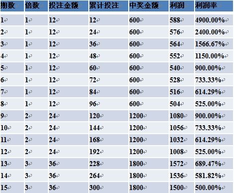 第一天,70期共投入140,中540或600(加奖后),净利润400或460;第二天,投入280,累计投入420,中1080或1200,当日净利润660或780;第三天,投入420,累计投入840,中出1620或1800,当日净利润780或960。