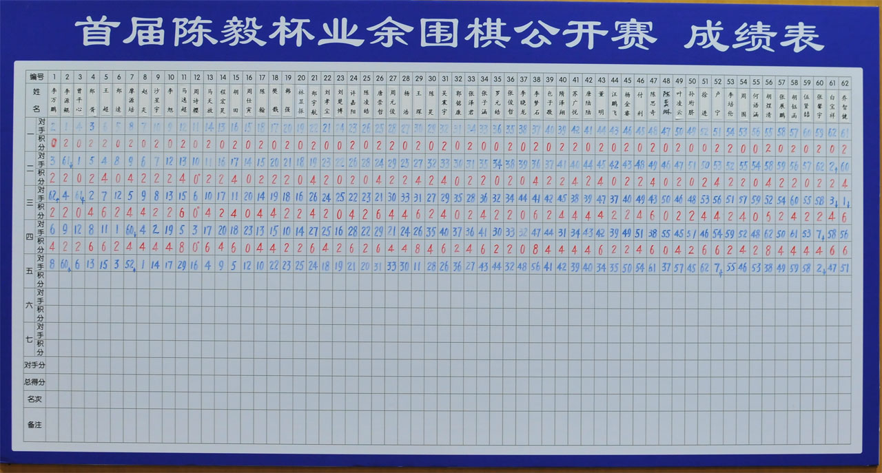 陈毅杯本赛总共进行7轮,积分前8名棋手晋级决赛阶段。