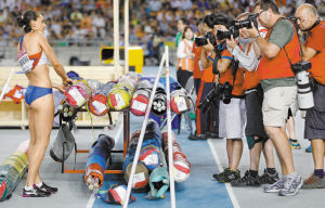 ▲赛前是焦点,赛后仍是焦点。伊辛巴耶娃在决赛后接受摄影记者拍摄。新华社发